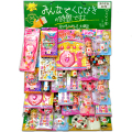 台紙サイズ約70×47cm。景品は変わることがございます。 くじ紙は付属品として台紙の裏等に入っています。くじ紙とは、約27cm×19cm位の紙製で、ミシン目に沿ってばらばらにし(約2.5cm×3.5cm位の小片になります)、小さな箱等に入れて使用します(箱は通常付いていませんが、組立式の物が入っている場合もまれにございます)。くじをめくり、出た番号と台紙の同じ番号の所に付いている賞品を取ります。