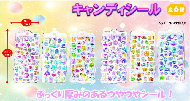 ぷっくりした可愛いシール。表面加工でキラキラ美しく光っています。
