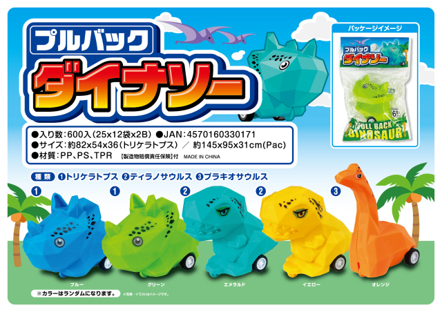 子供に人気の恐竜型プルバックおもちゃ!!