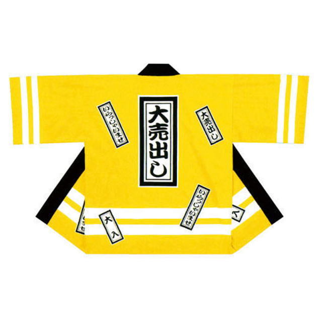 bt-224simy 【黄】 大売出し伴天 (短冊柄) 【はっぴ半被・はんてん半纏袢纏】