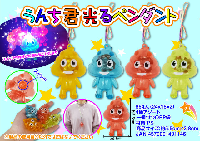 gla-15top 体付うんちくん光るペンダント 24入