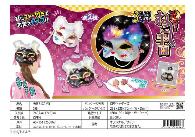 gla-28hir 光る!ねこ半面(光る猫、ネコお面) 12入