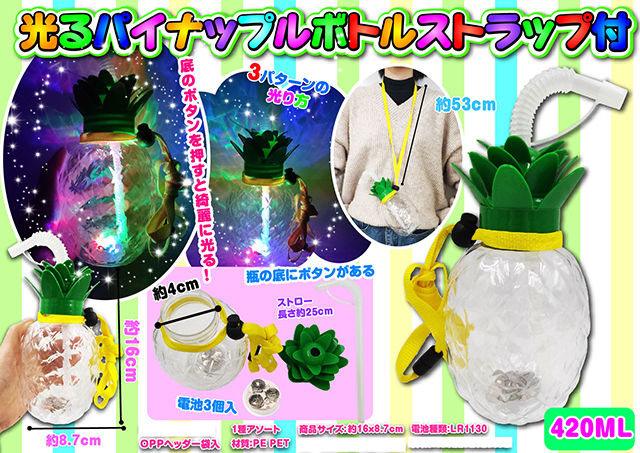 【特価販売中】gld-469top 光るパイナップルボトル ストラップ付 6個入(電球ボトル類似品 光る容器)